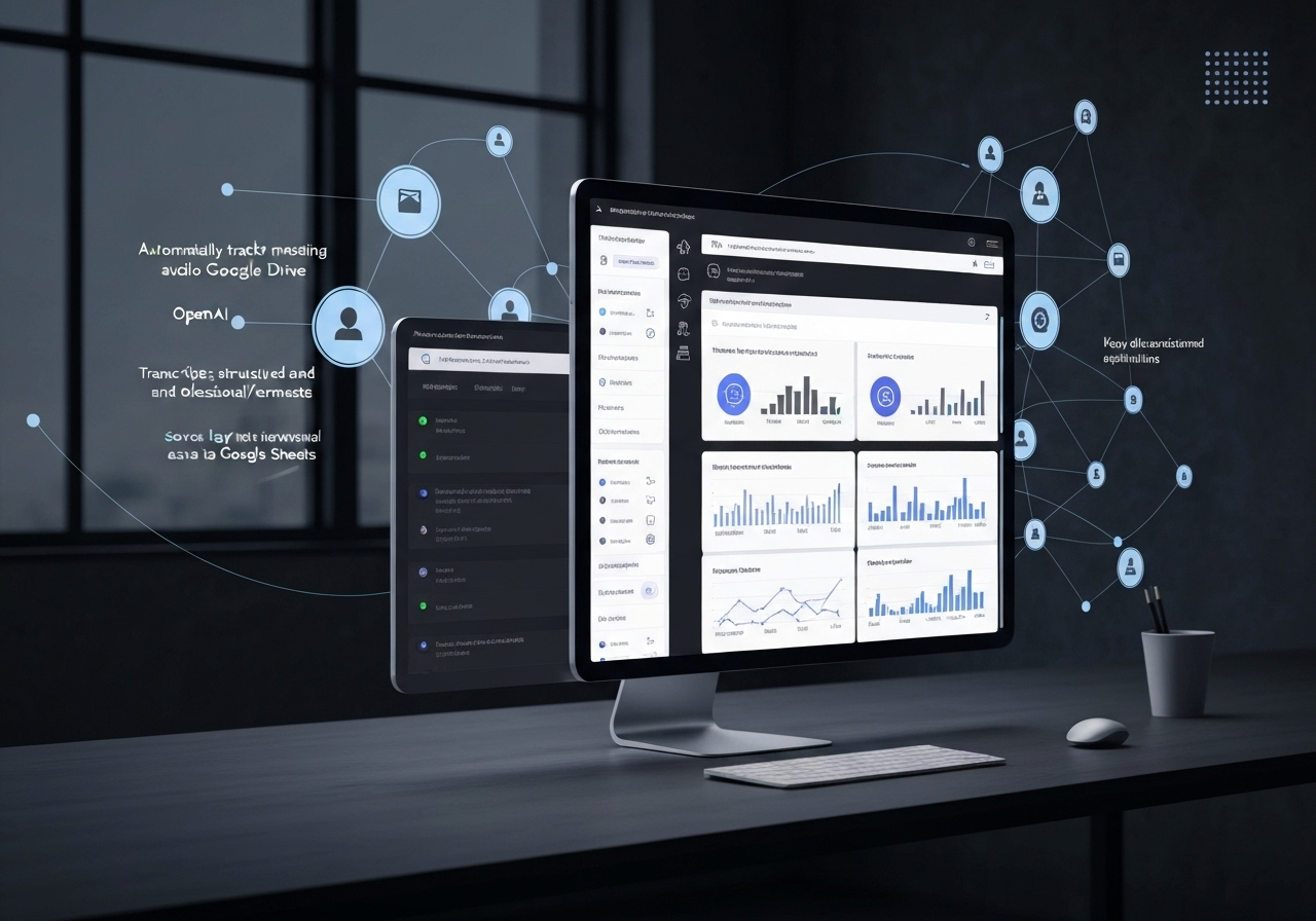 Агент автоматически преобразует аудиозаписи встреч в структурированные и понятные сводки, используя технологии OpenAI Whisper для транскрипции и ChatGPT для генерации резюме. Он интегрируется с Google Drive для мониторинга новых файлов и Google Sheets для сохранения итогов, что обеспечивает удобный доступ и поиск информации.