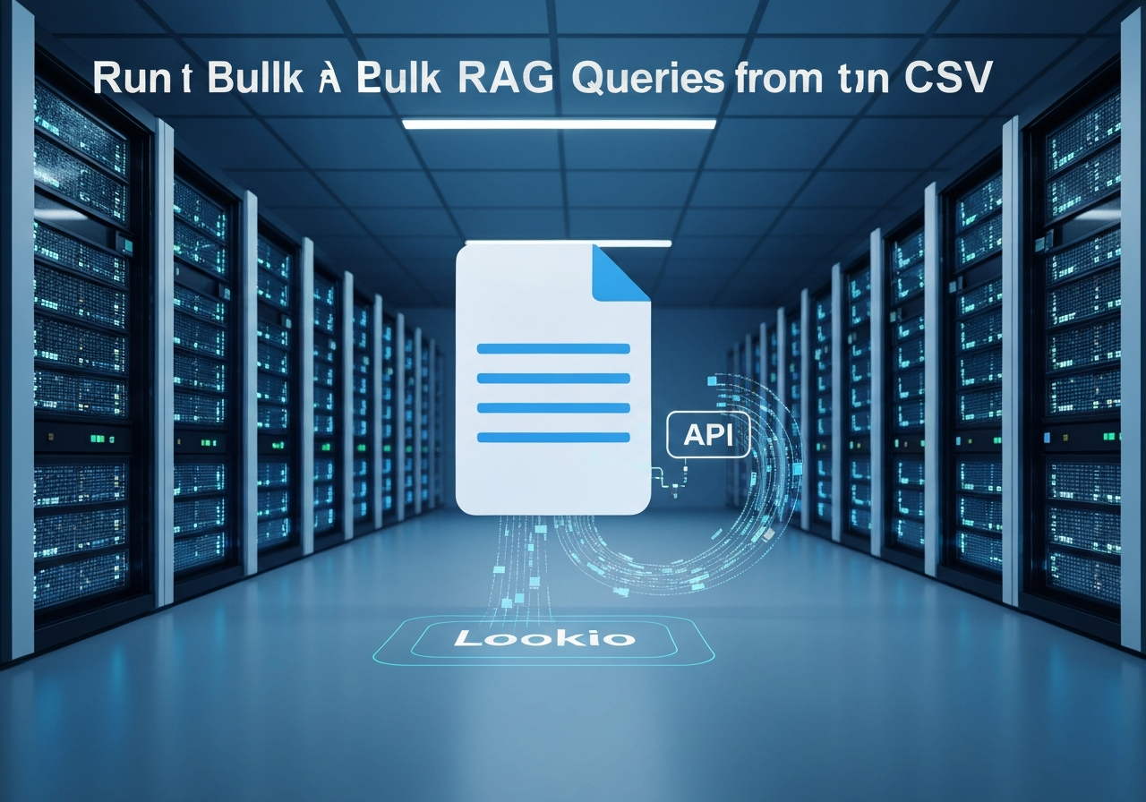 Агент выполняет массовые запросы из CSV файла, обрабатывая данные через API Lookio для получения обогащенных ответов на заданные вопросы. Он позволяет пользователям загружать CSV с колонкой 'Query', автоматически обрабатывать каждый вопрос и добавлять соответствующий 'Response' в результирующий файл. Это решение оптимизирует работу с большими объемами информации, обеспечивая достоверность ответов на основе загруженных документов.