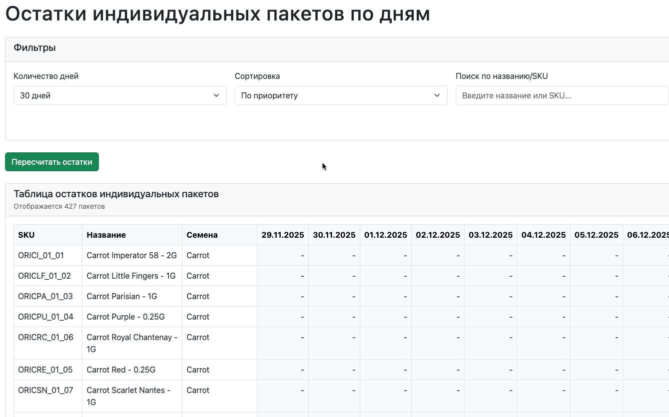 Это позволяет системе автоматически определять критичность остатков и приоритизировать производство.