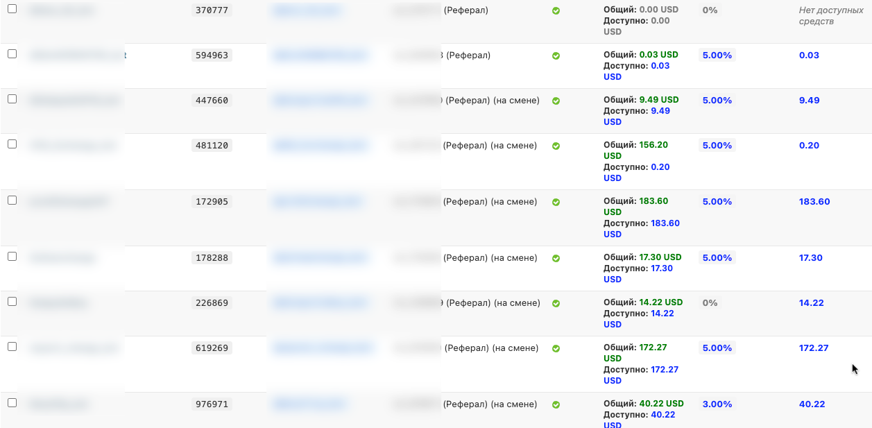 - Настройка ставок комиссий для каждого партнера индивидуально